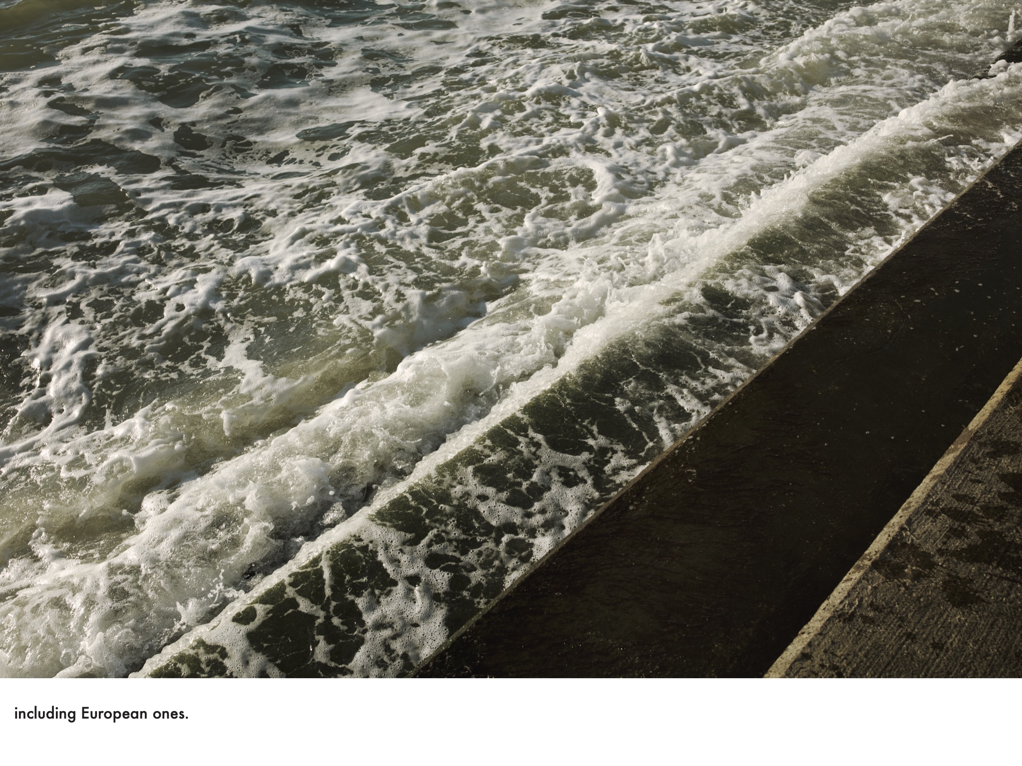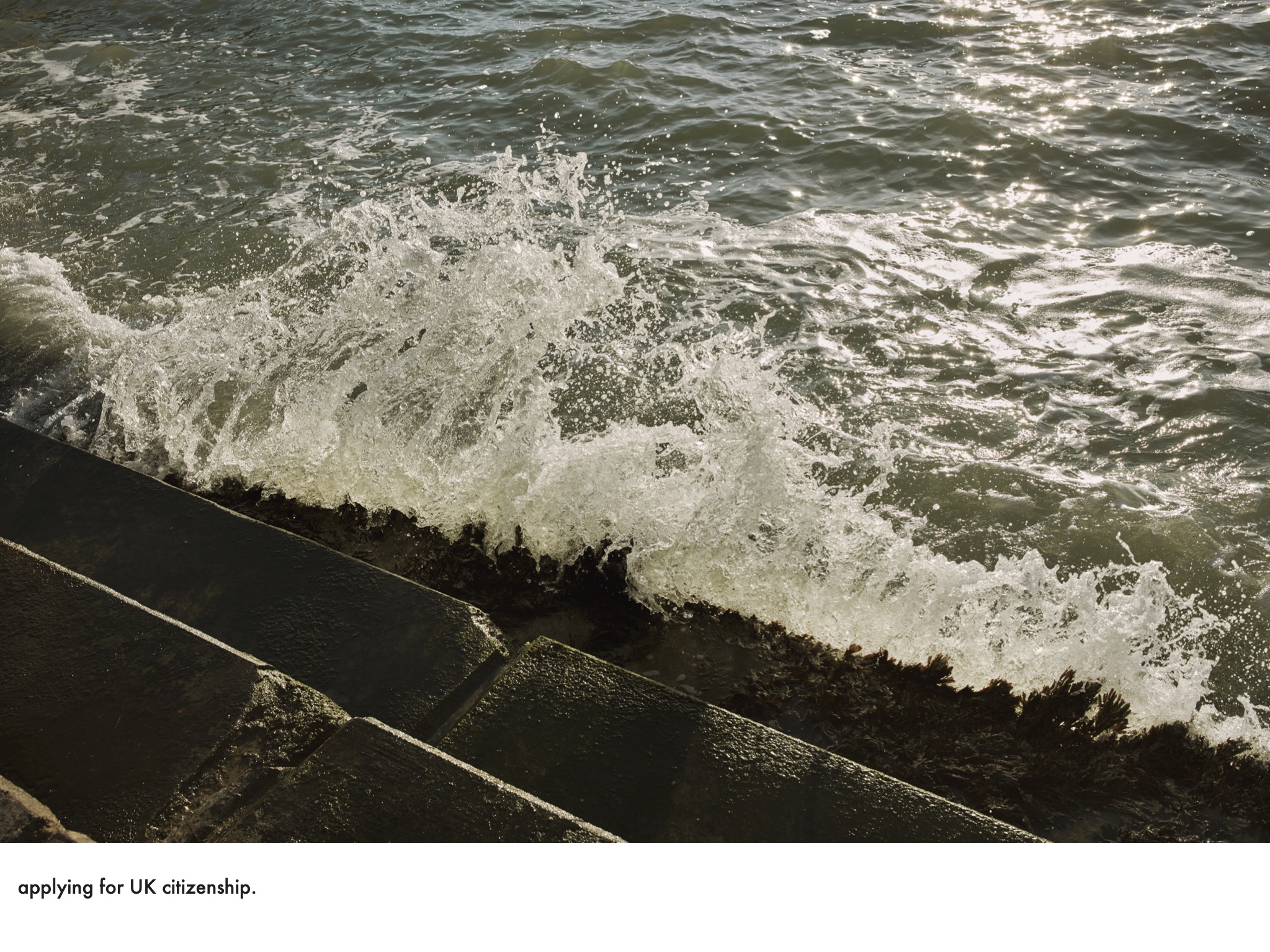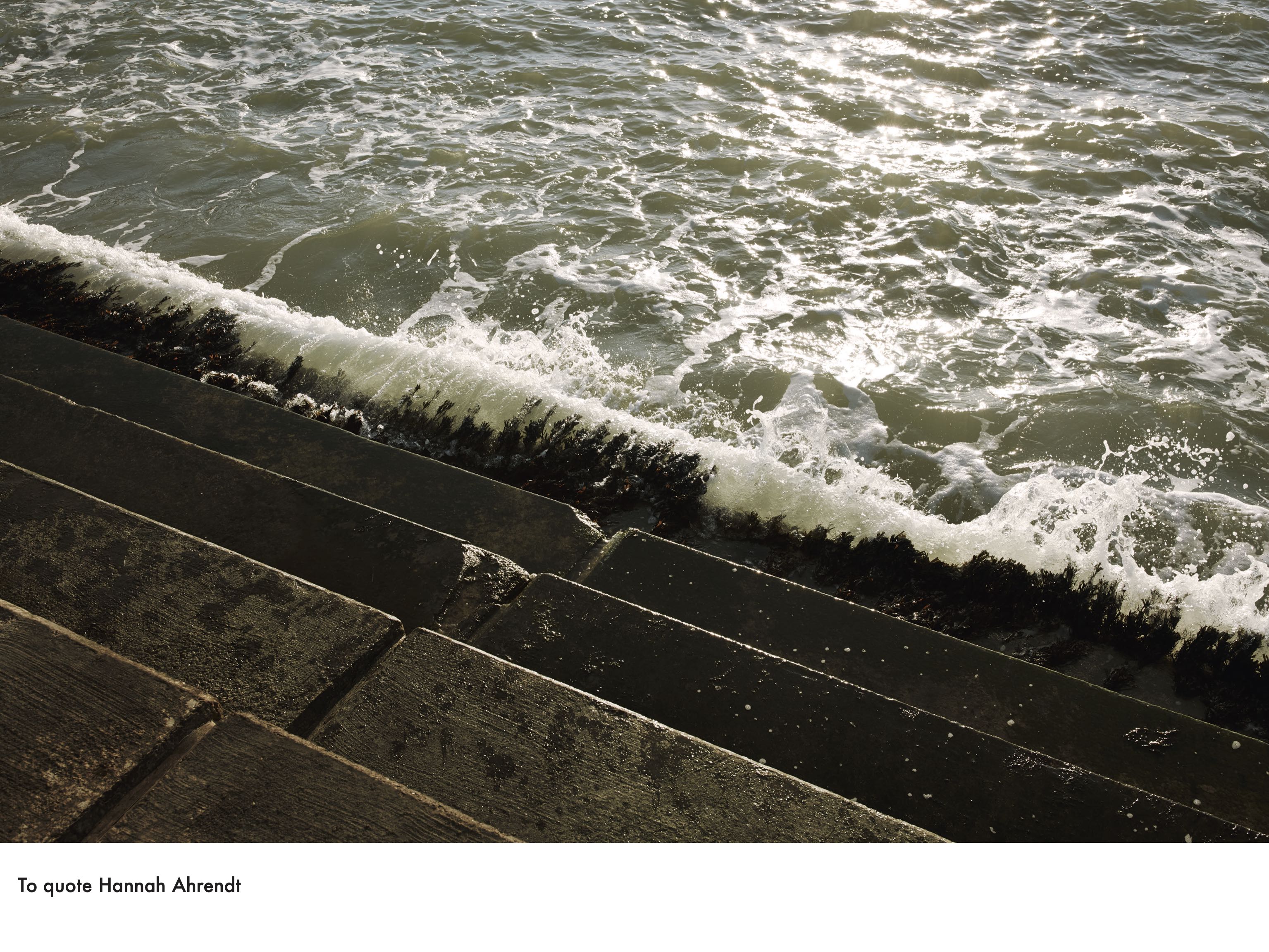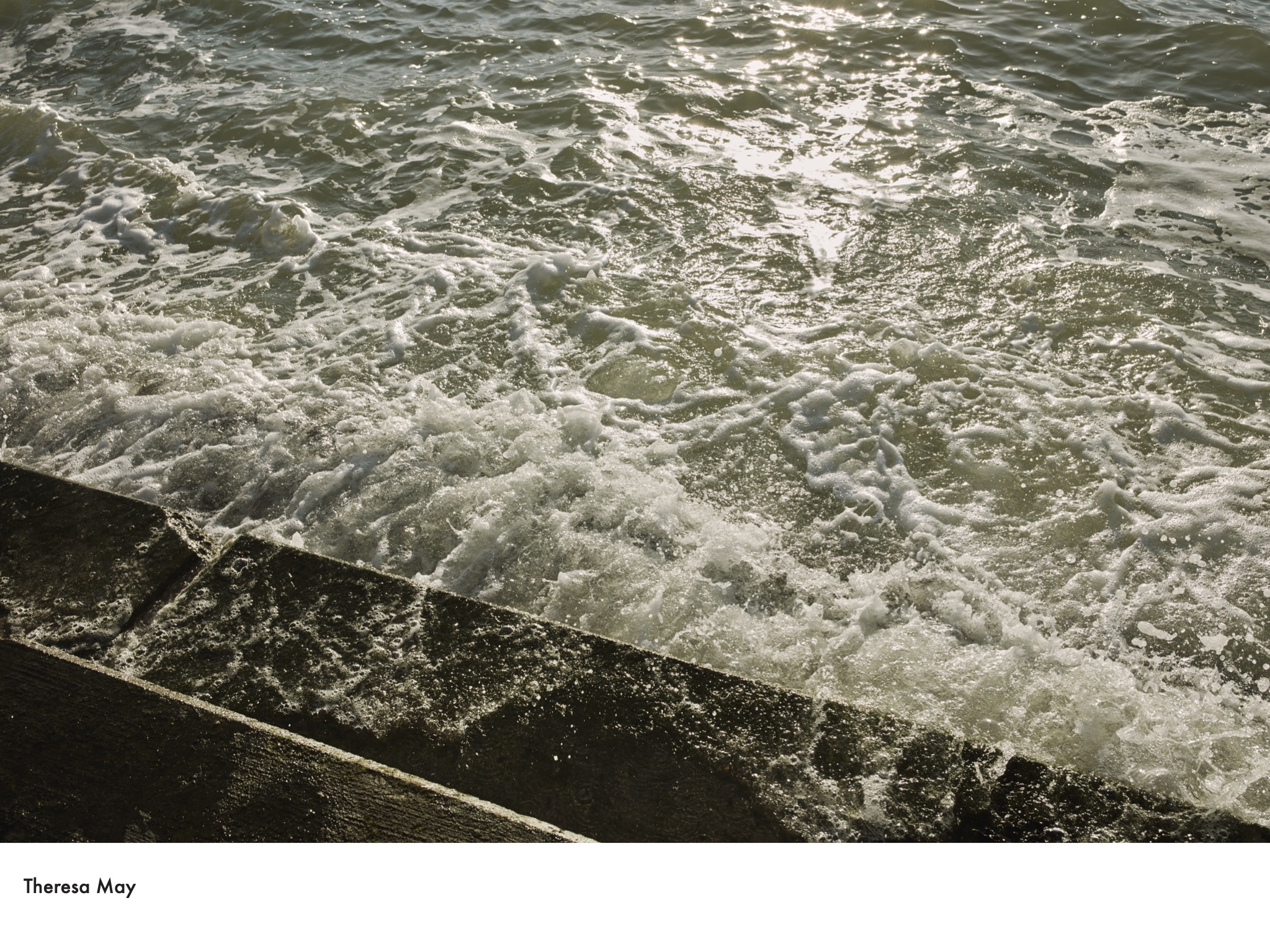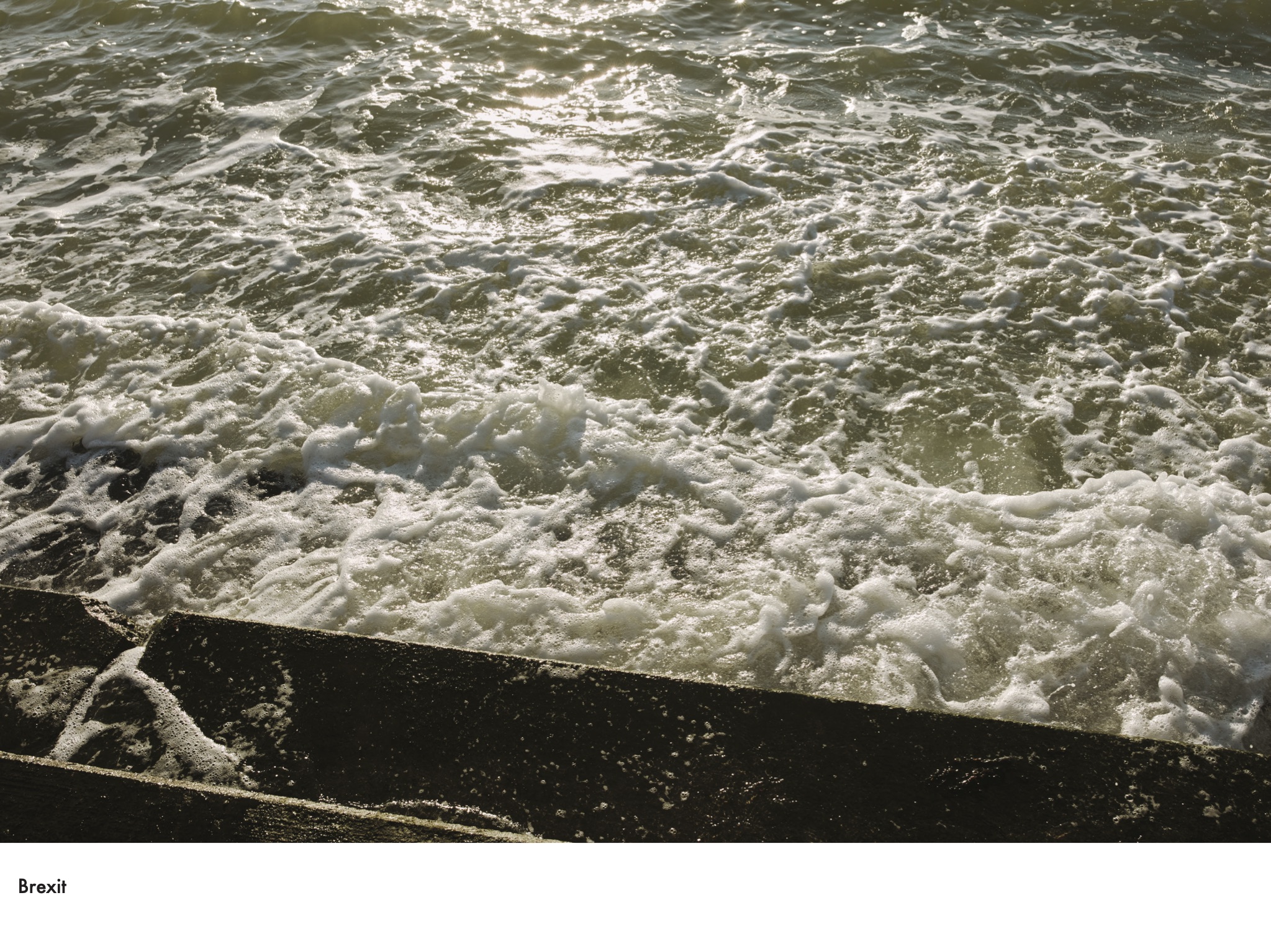 In December 2018, I stood on the steps to the channel at Dover and photographed the sea. Showing waves crashing into concrete, these images express the emotional turmoil I experienced during Brexit. In Finstere Zeiten [Dark Times], I have combined these shots with text drawn from newspapers, books, and personal experience, which illustrate the intensity of the division and debate in Britain at this time. I am interested in documenting moral shifts in society, changes which are initially almost imperceptible then slowly lead a society into a different direction; over the last decade, Britain has undergone a profound change. The title of my project comes from Hannah Arendt’s book, Men in Dark Times, which argues that “of all the specific liberties which may come into our minds when we hear the word freedom, freedom of movement is historically the oldest and also the most elementary”. The images focus on the sea, an ever-moving body that flows from place to place. The channel isn’t owned by a single country and, while it serves as a frontier, it’s also always facilitated travel.