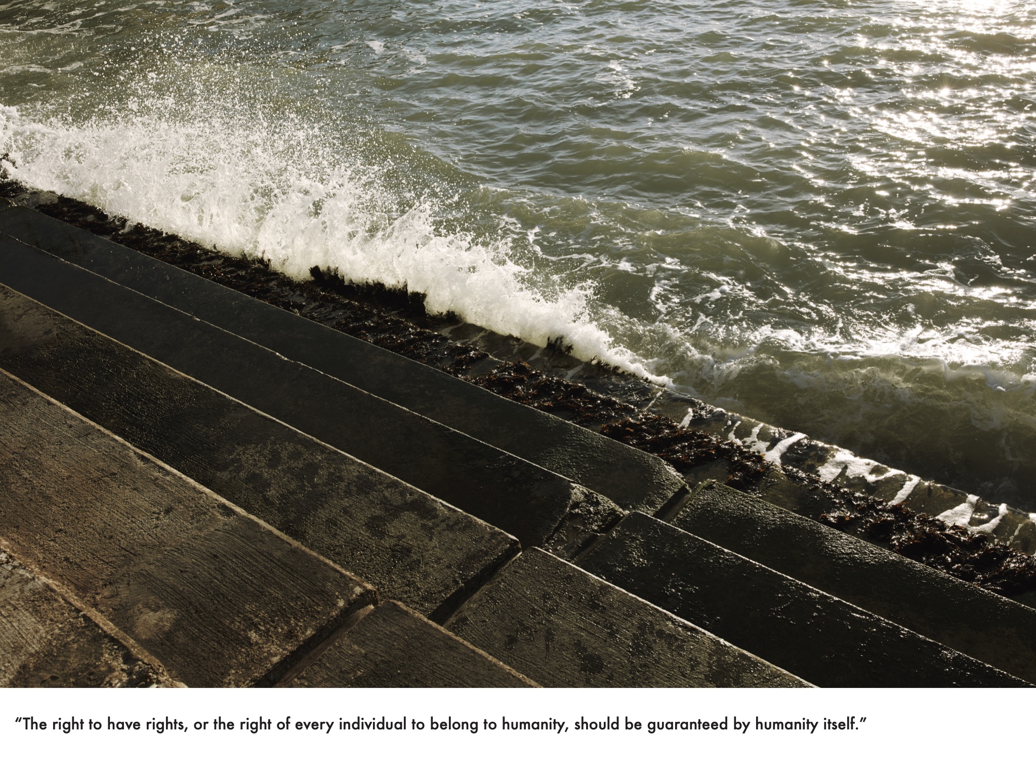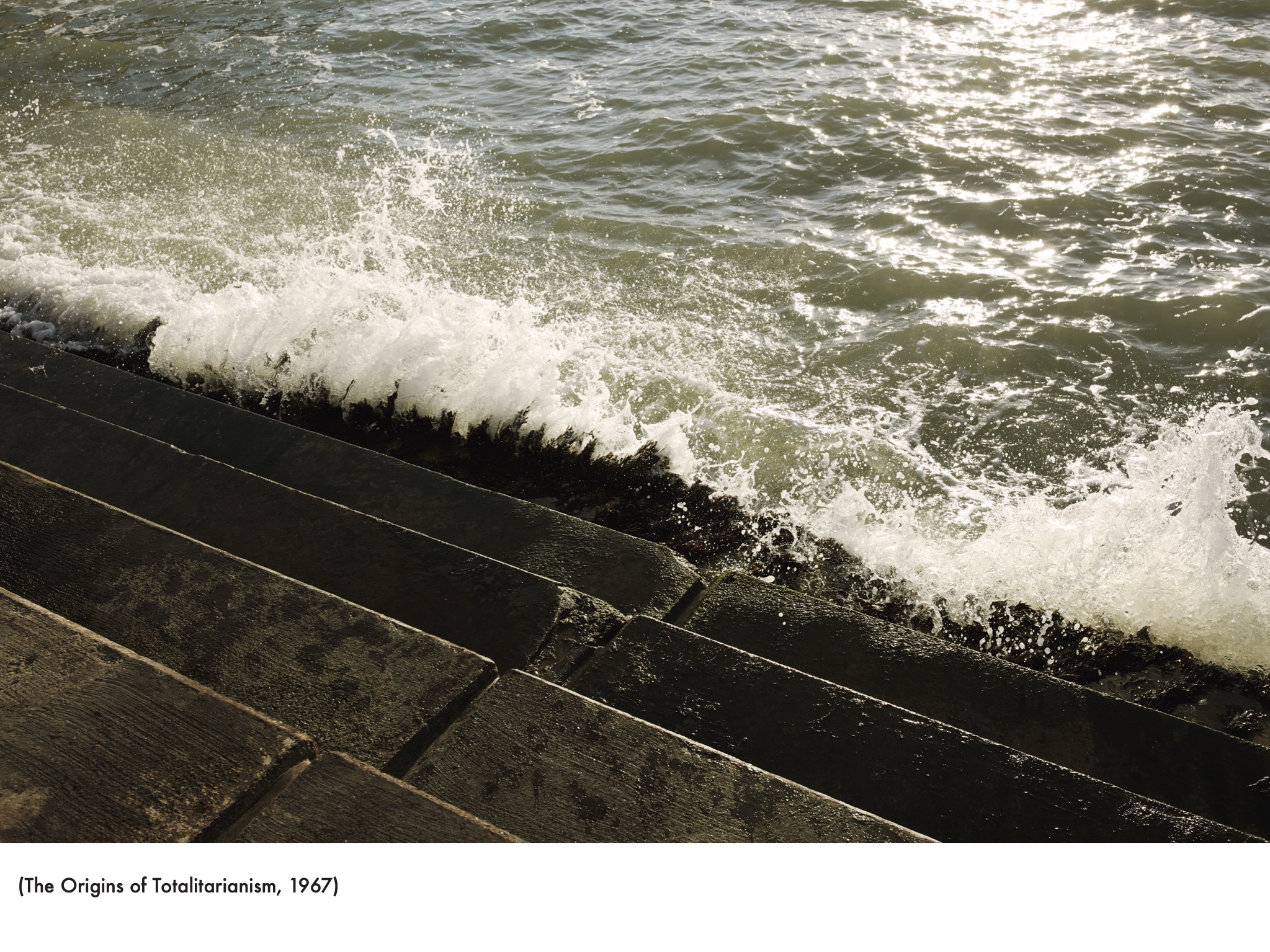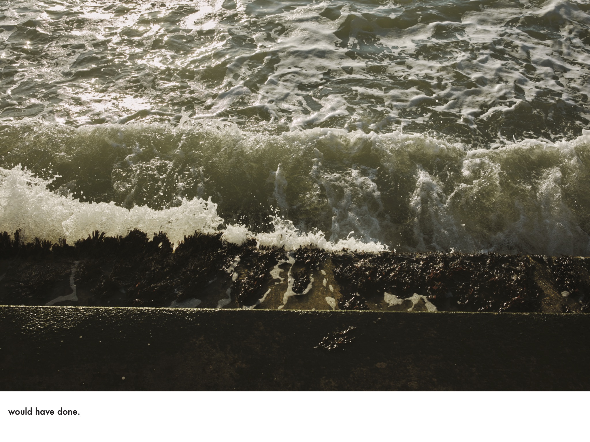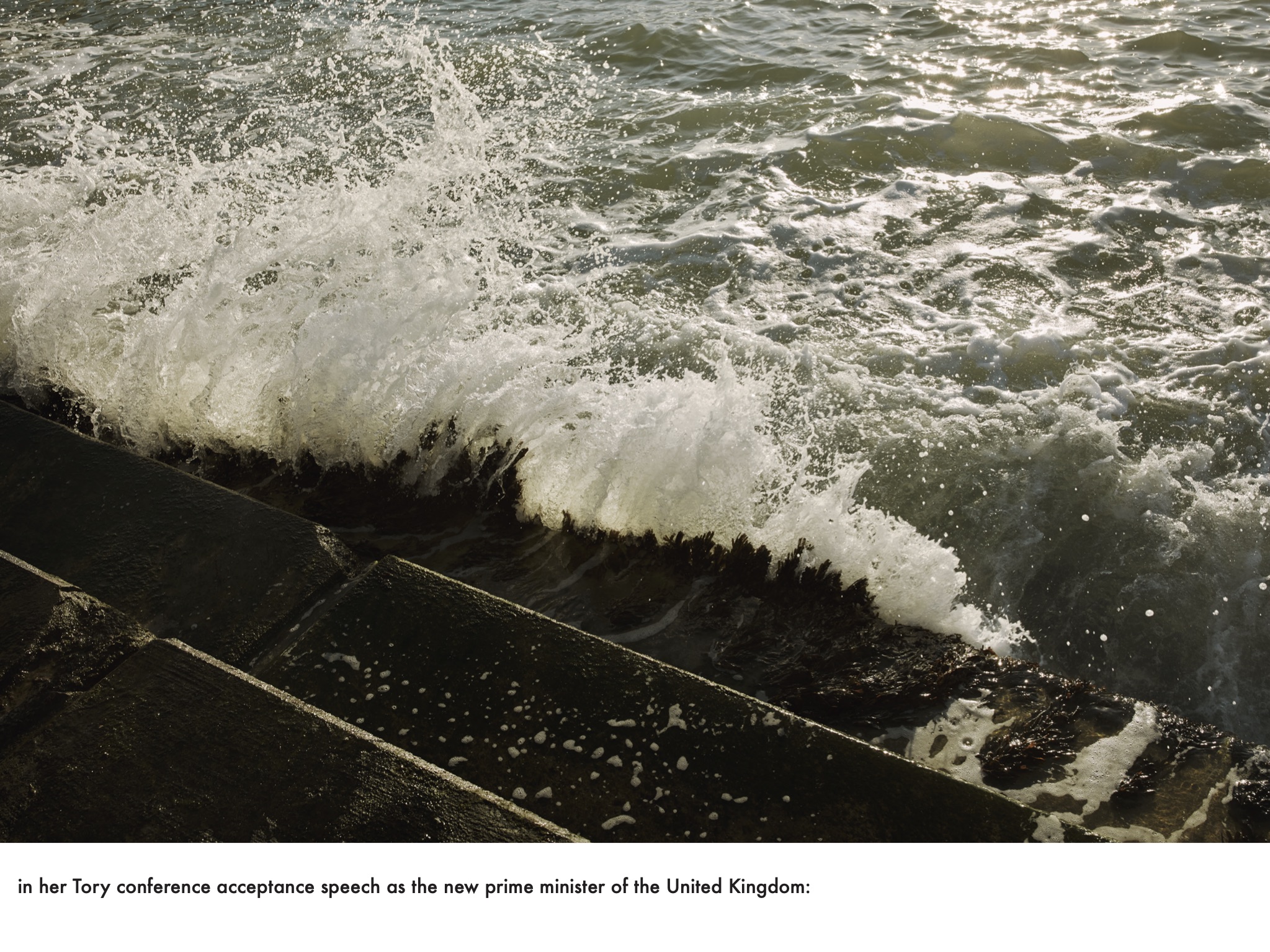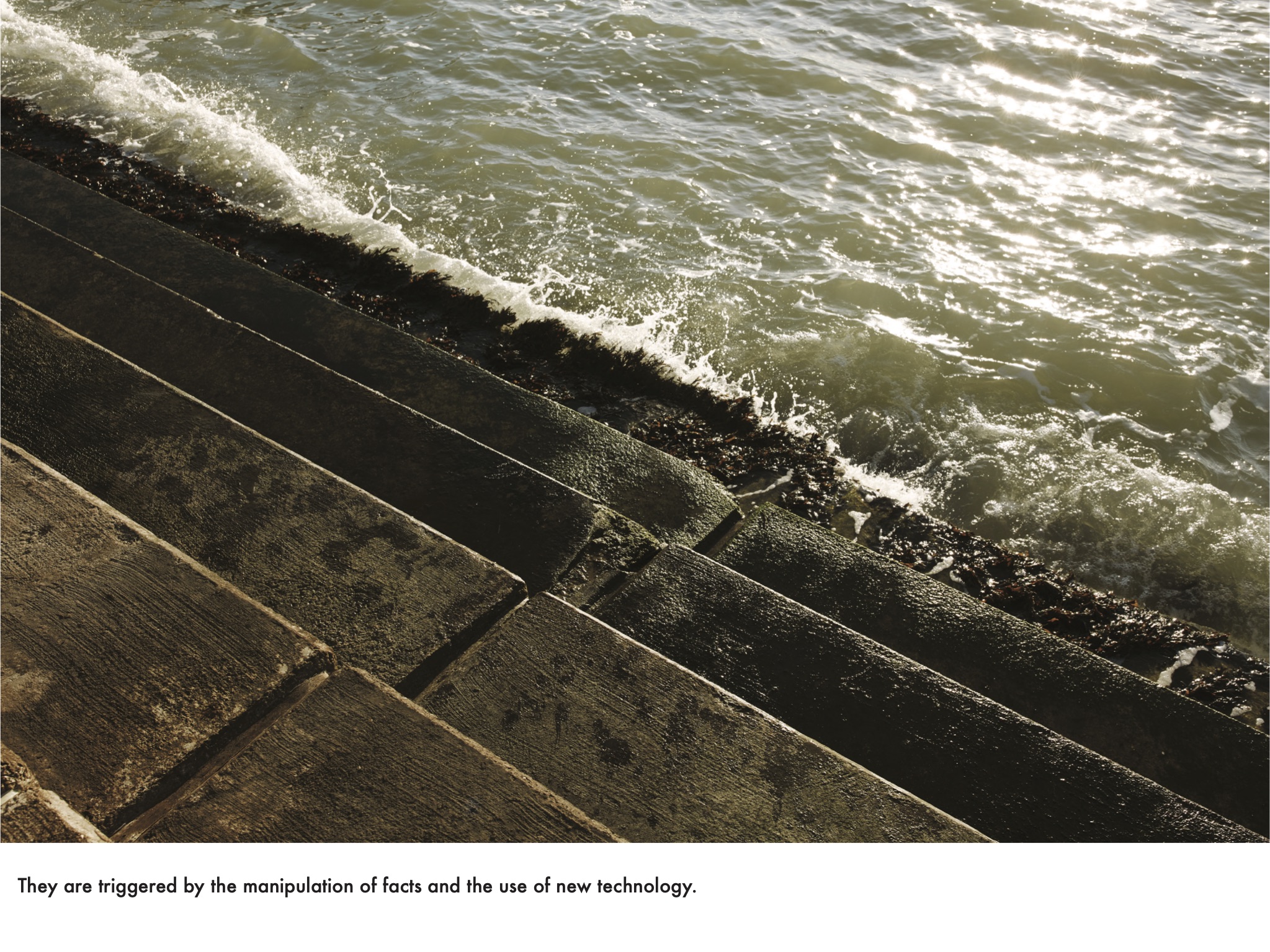 In December 2018, I stood on the steps to the channel at Dover and photographed the sea. Showing waves crashing into concrete, these images express the emotional turmoil I experienced during Brexit. In Finstere Zeiten [Dark Times], I have combined these shots with text drawn from newspapers, books, and personal experience, which illustrate the intensity of the division and debate in Britain at this time. I am interested in documenting moral shifts in society, changes which are initially almost imperceptible then slowly lead a society into a different direction; over the last decade, Britain has undergone a profound change. The title of my project comes from Hannah Arendt’s book, Men in Dark Times, which argues that “of all the specific liberties which may come into our minds when we hear the word freedom, freedom of movement is historically the oldest and also the most elementary”. The images focus on the sea, an ever-moving body that flows from place to place. The channel isn’t owned by a single country and, while it serves as a frontier, it’s also always facilitated travel.