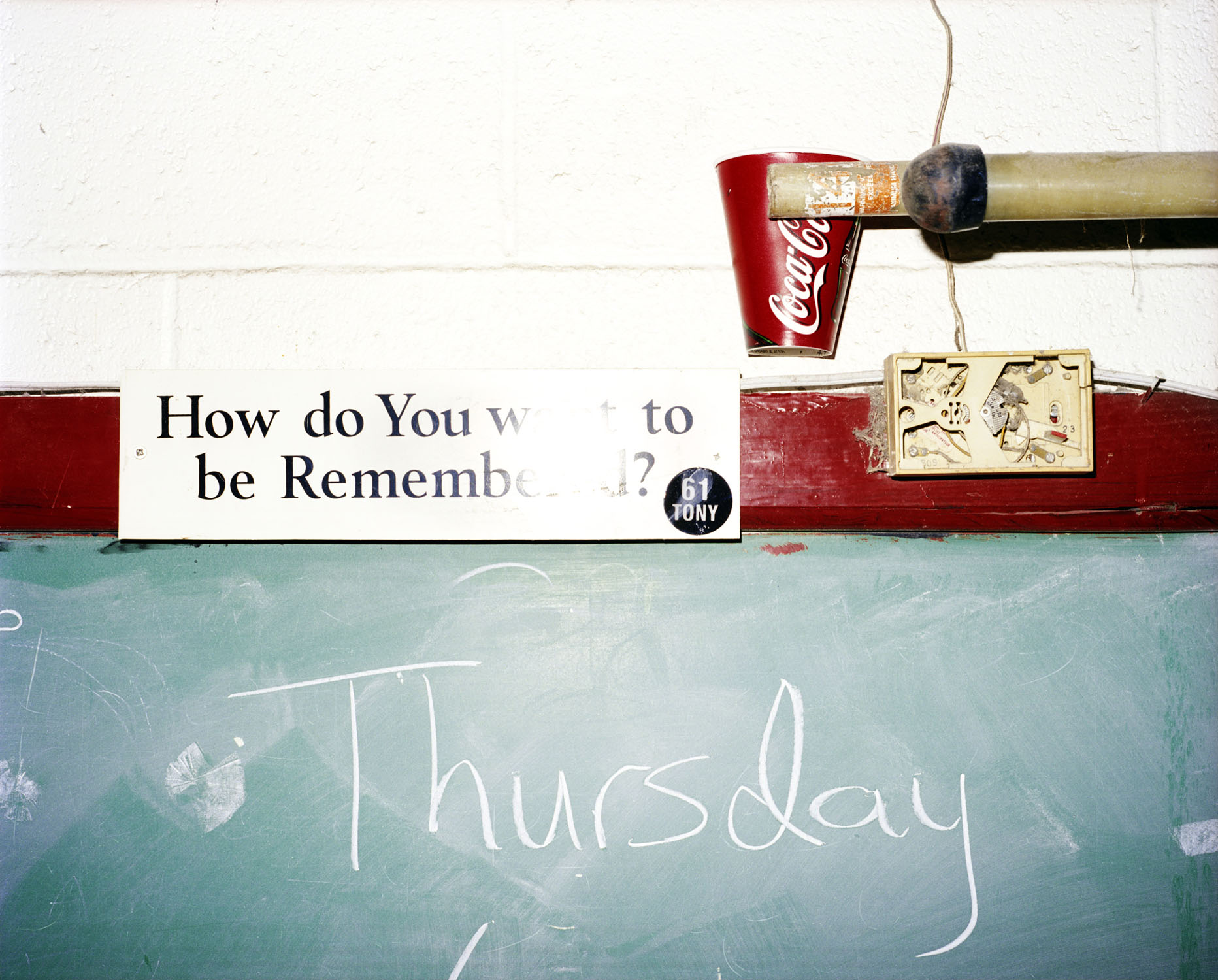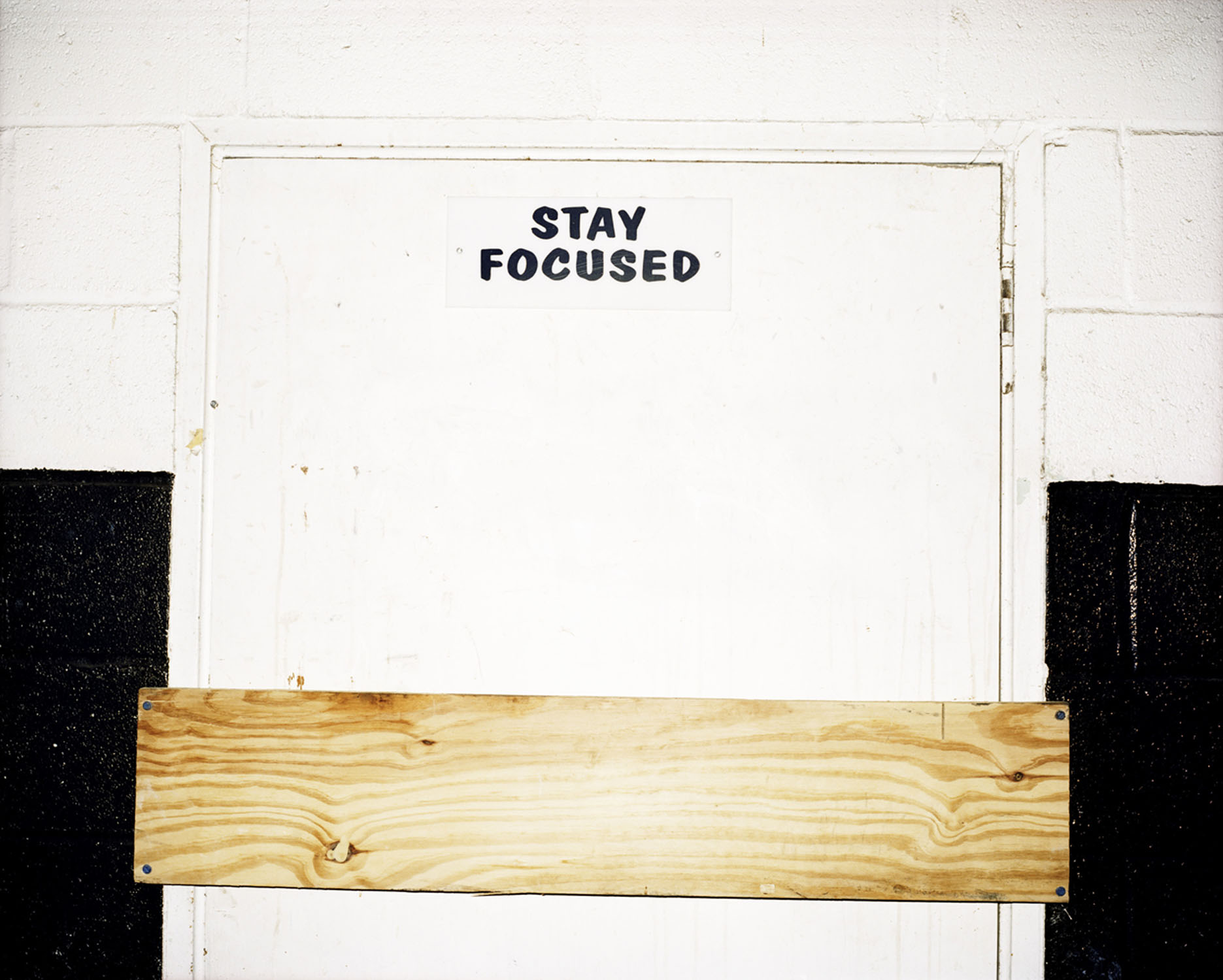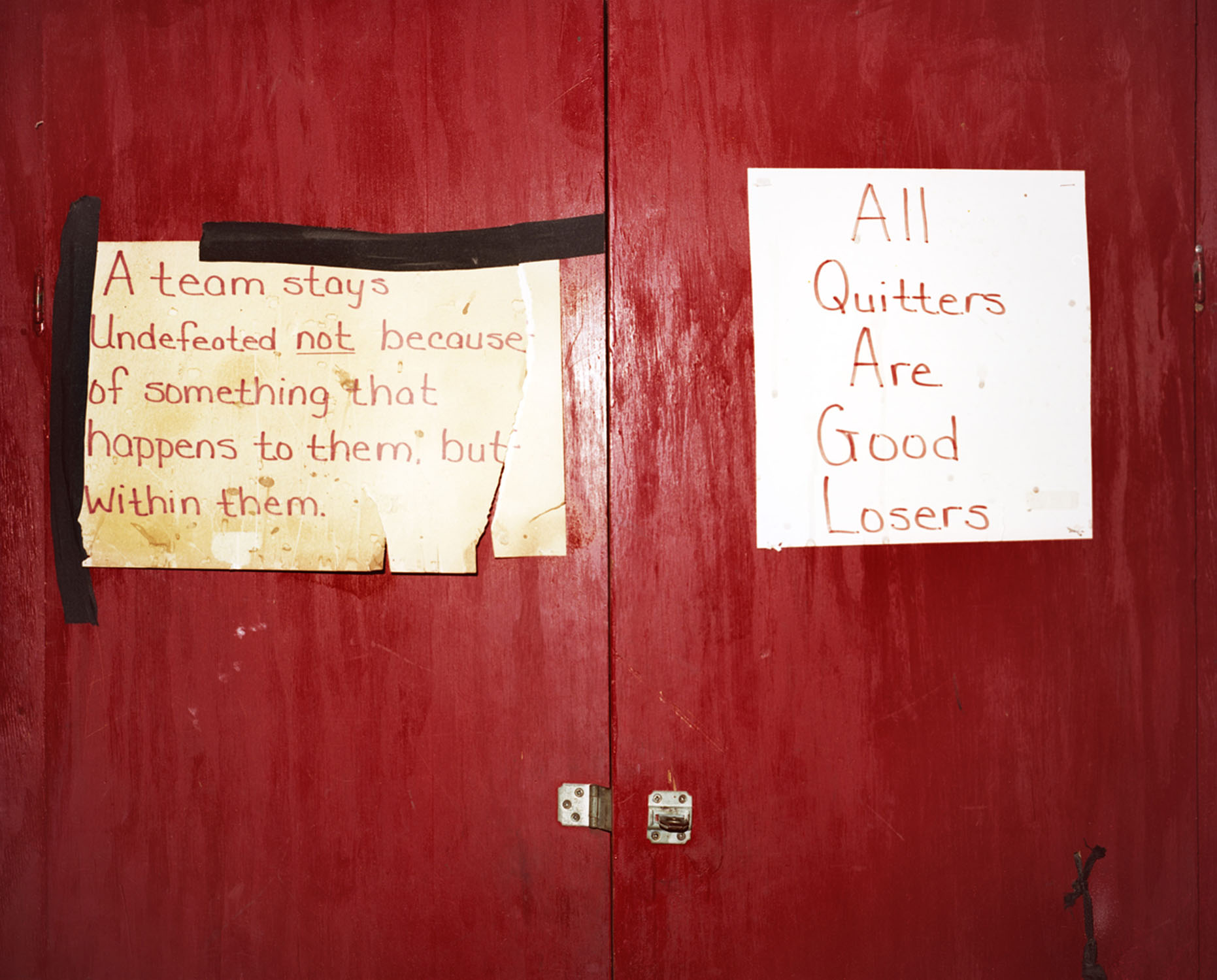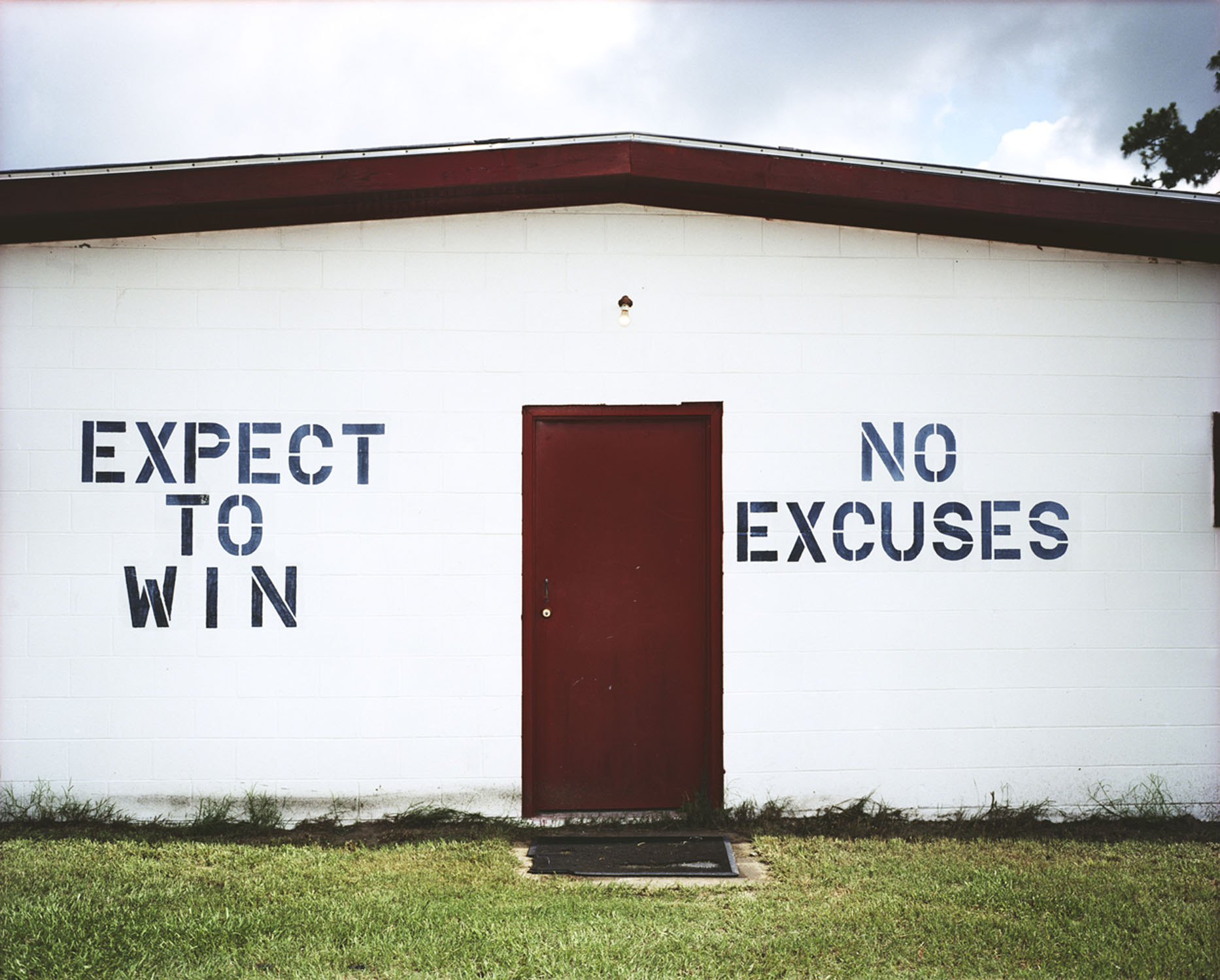 Whilst on assignment shooting an American athlete at his high school, I noticed slogans and messages spread over the entire school as a means to motivate and inspire students. I was unaccustomed to such visual slogans of motivation. My immediate emotional response of the slogans was infromed by my upbringing in post war Germany and prompted the interpretations explored in this project." All photographs printed in Propaganda were taken in 2005 in Georgia, USA.