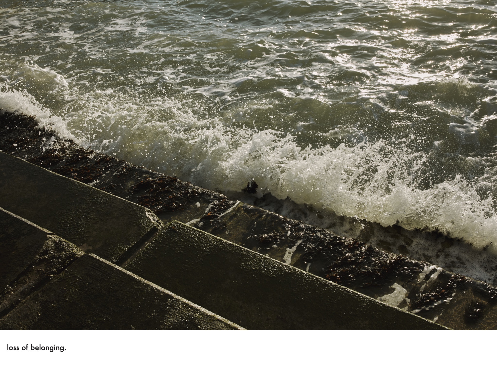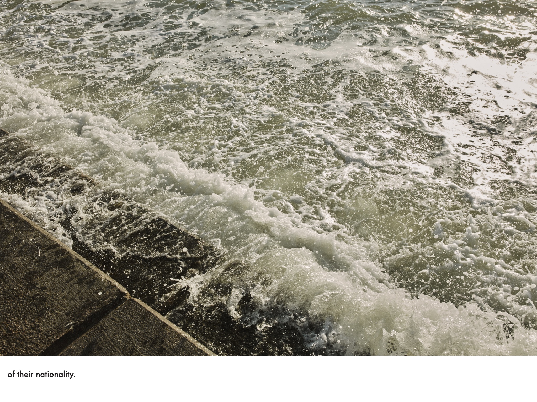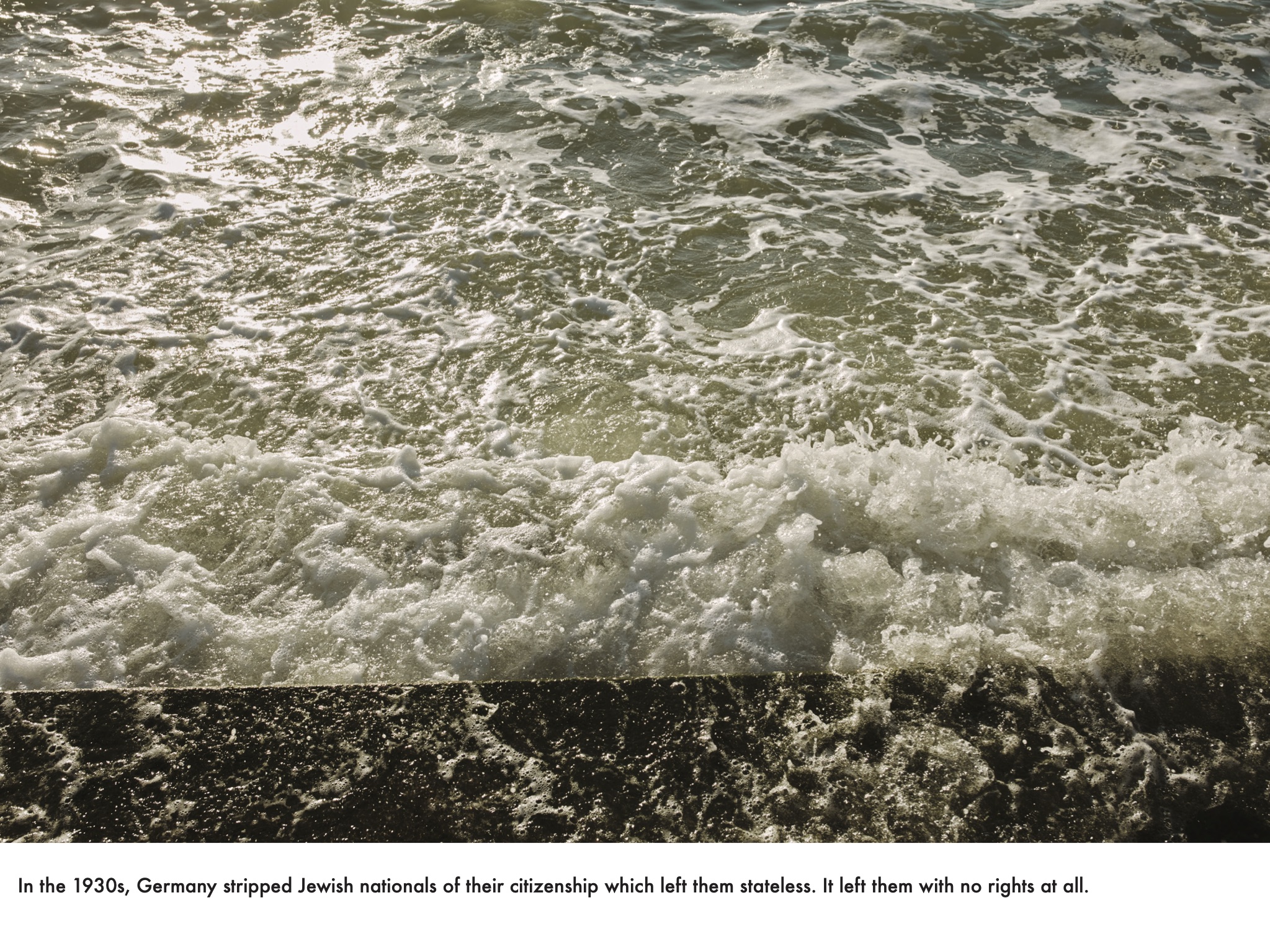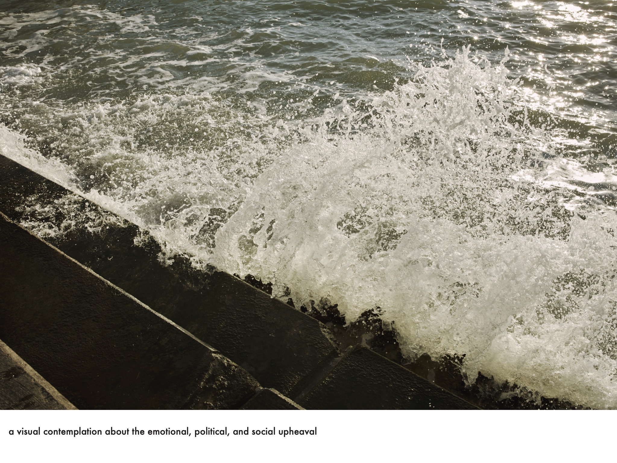 In December 2018, I stood on the steps to the channel at Dover and photographed the sea. Showing waves crashing into concrete, these images express the emotional turmoil I experienced during Brexit. In Finstere Zeiten [Dark Times], I have combined these shots with text drawn from newspapers, books, and personal experience, which illustrate the intensity of the division and debate in Britain at this time. I am interested in documenting moral shifts in society, changes which are initially almost imperceptible then slowly lead a society into a different direction; over the last decade, Britain has undergone a profound change. The title of my project comes from Hannah Arendt’s book, Men in Dark Times, which argues that “of all the specific liberties which may come into our minds when we hear the word freedom, freedom of movement is historically the oldest and also the most elementary”. The images focus on the sea, an ever-moving body that flows from place to place. The channel isn’t owned by a single country and, while it serves as a frontier, it’s also always facilitated travel.