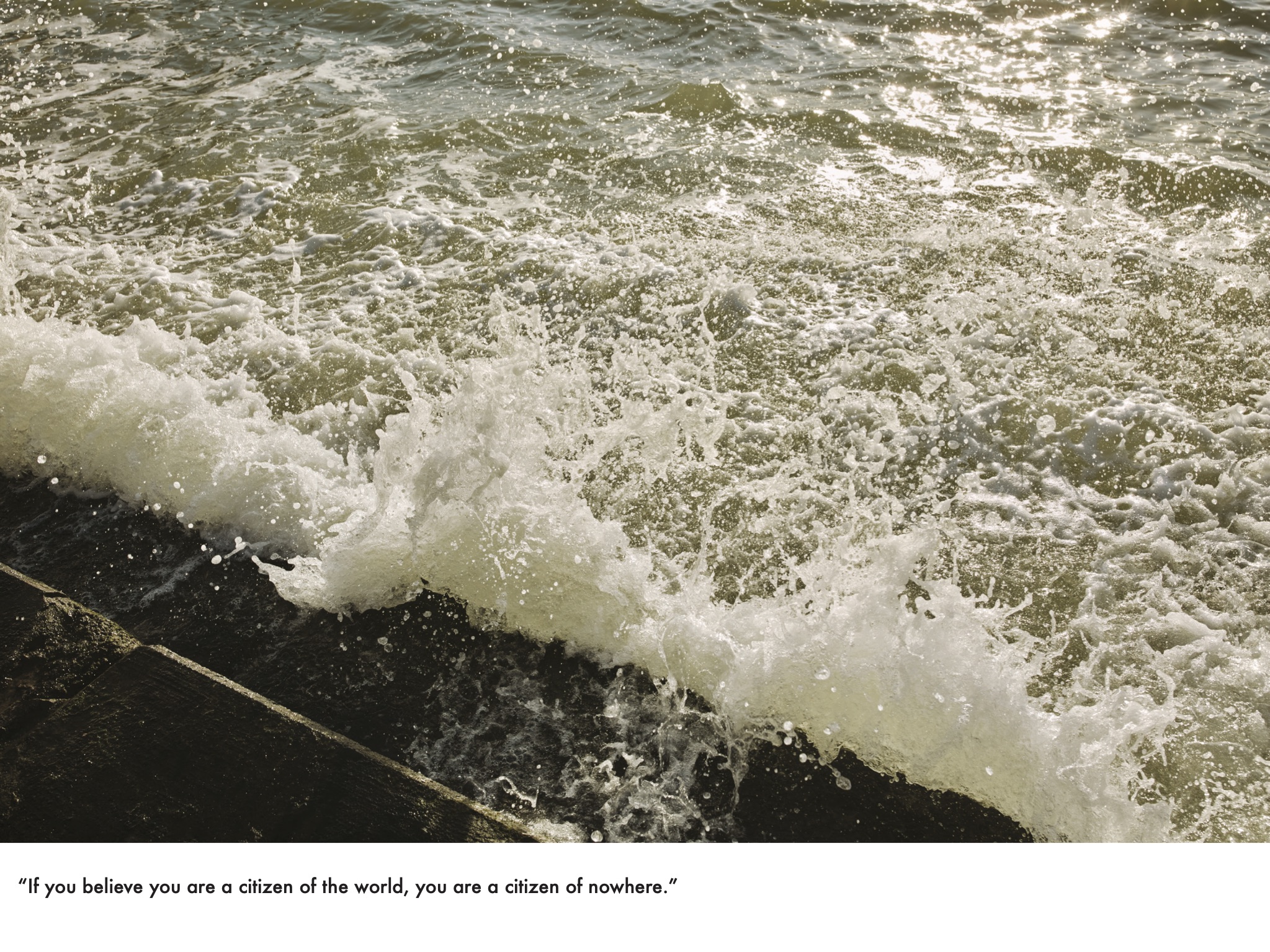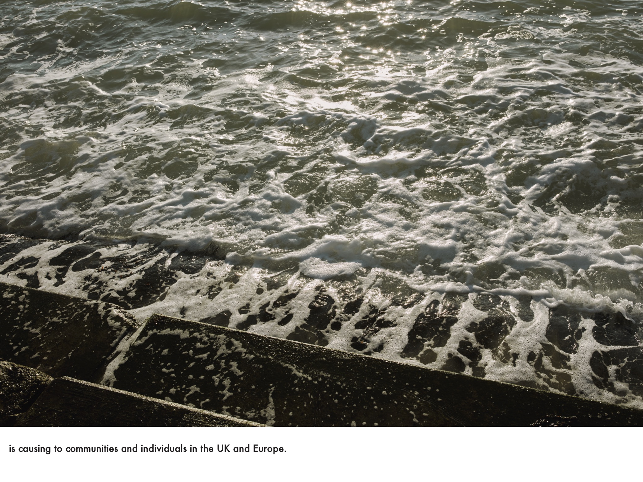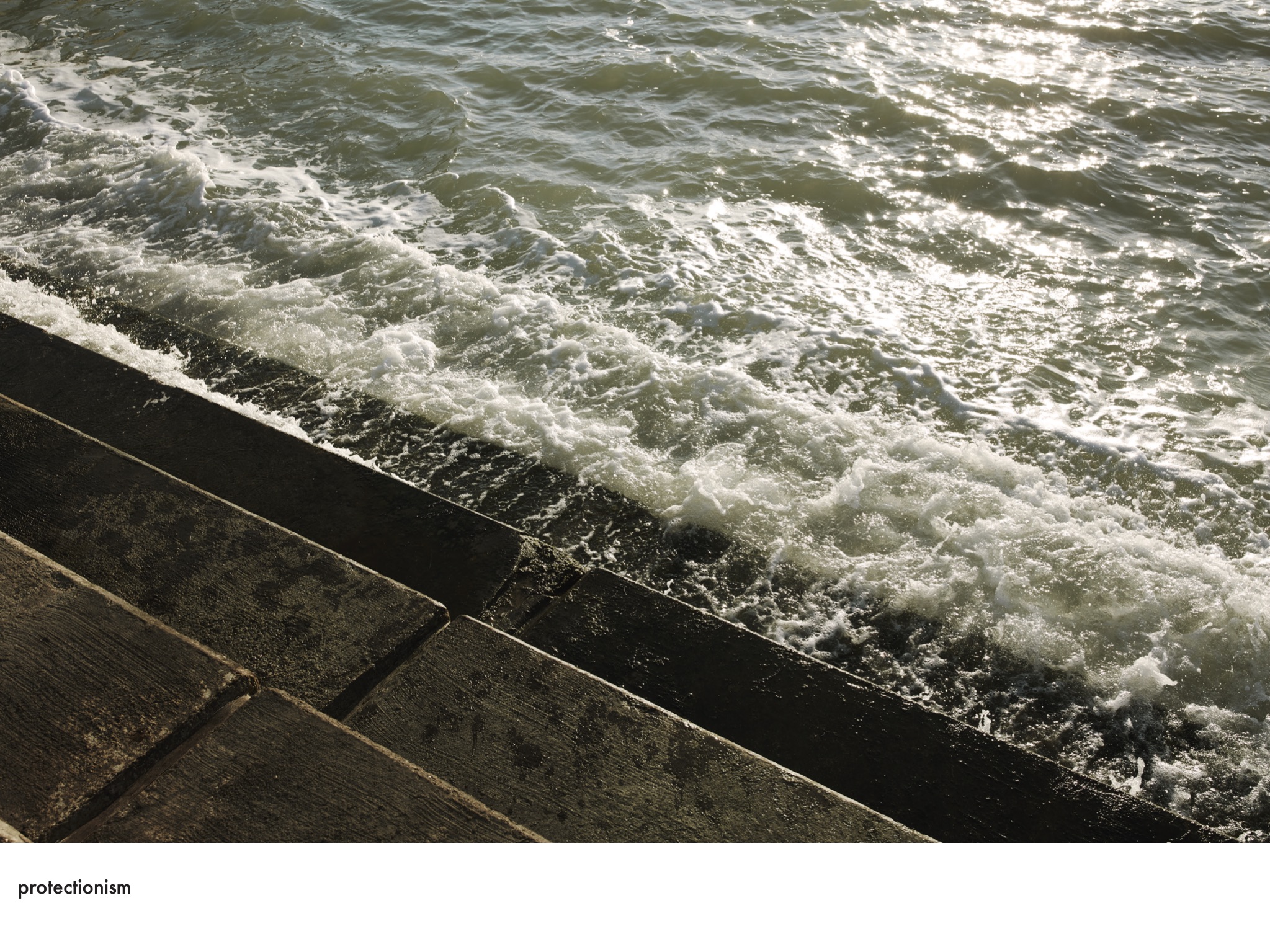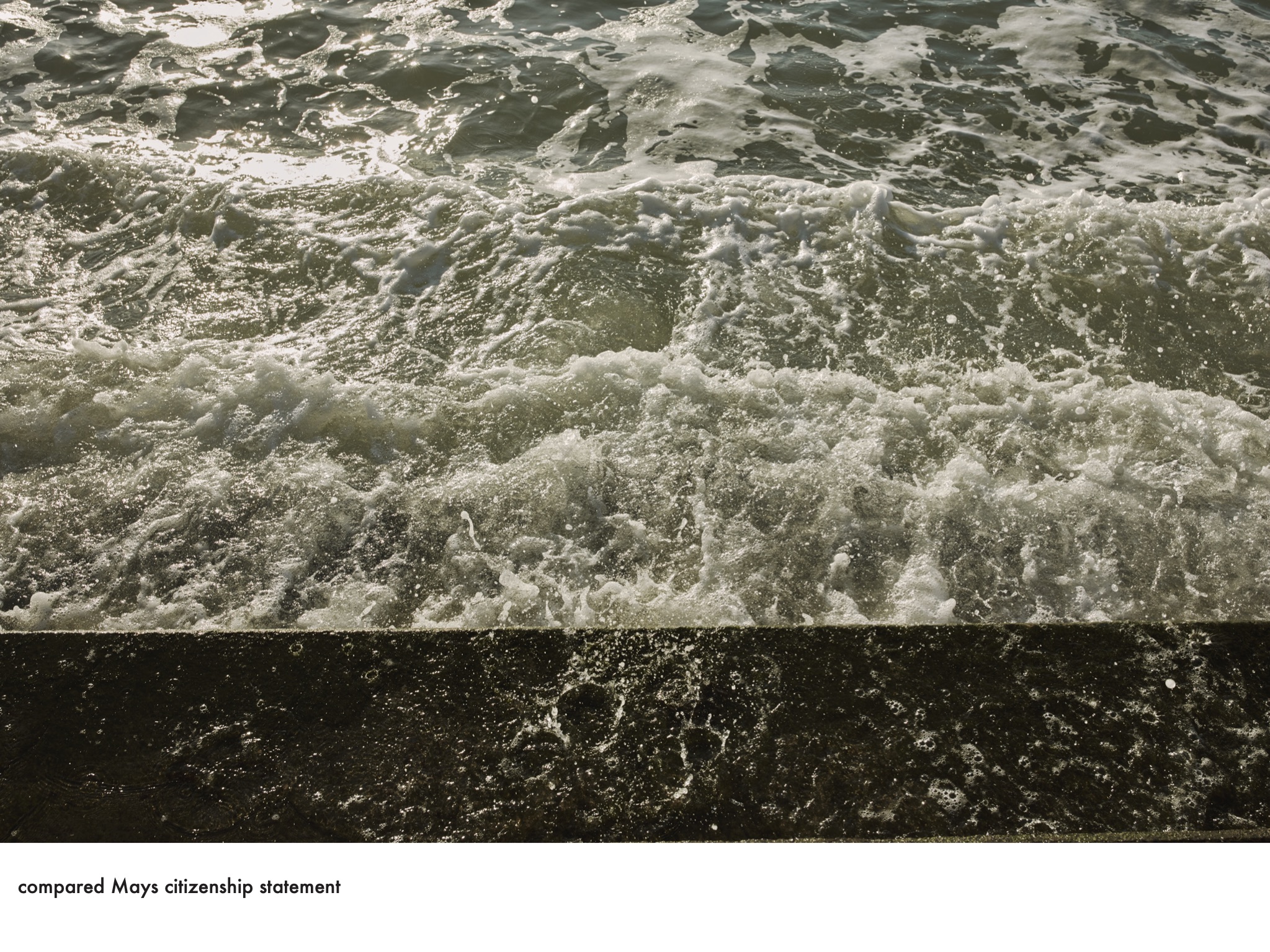 In December 2018, I stood on the steps to the channel at Dover and photographed the sea. Showing waves crashing into concrete, these images express the emotional turmoil I experienced during Brexit. In Finstere Zeiten [Dark Times], I have combined these shots with text drawn from newspapers, books, and personal experience, which illustrate the intensity of the division and debate in Britain at this time. I am interested in documenting moral shifts in society, changes which are initially almost imperceptible then slowly lead a society into a different direction; over the last decade, Britain has undergone a profound change. The title of my project comes from Hannah Arendt’s book, Men in Dark Times, which argues that “of all the specific liberties which may come into our minds when we hear the word freedom, freedom of movement is historically the oldest and also the most elementary”. The images focus on the sea, an ever-moving body that flows from place to place. The channel isn’t owned by a single country and, while it serves as a frontier, it’s also always facilitated travel.