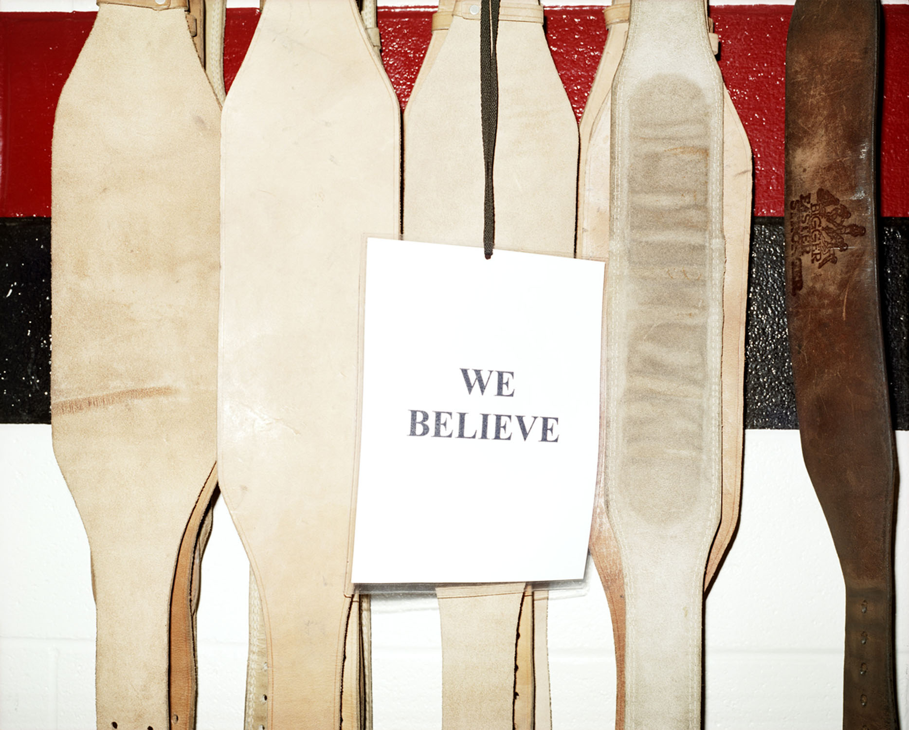 Whilst on assignment shooting an American athlete at his high school, I noticed slogans and messages spread over the entire school as a means to motivate and inspire students. I was unaccustomed to such visual slogans of motivation. My immediate emotional response of the slogans was infromed by my upbringing in post war Germany and prompted the interpretations explored in this project." All photographs printed in Propaganda were taken in 2005 in Georgia, USA.